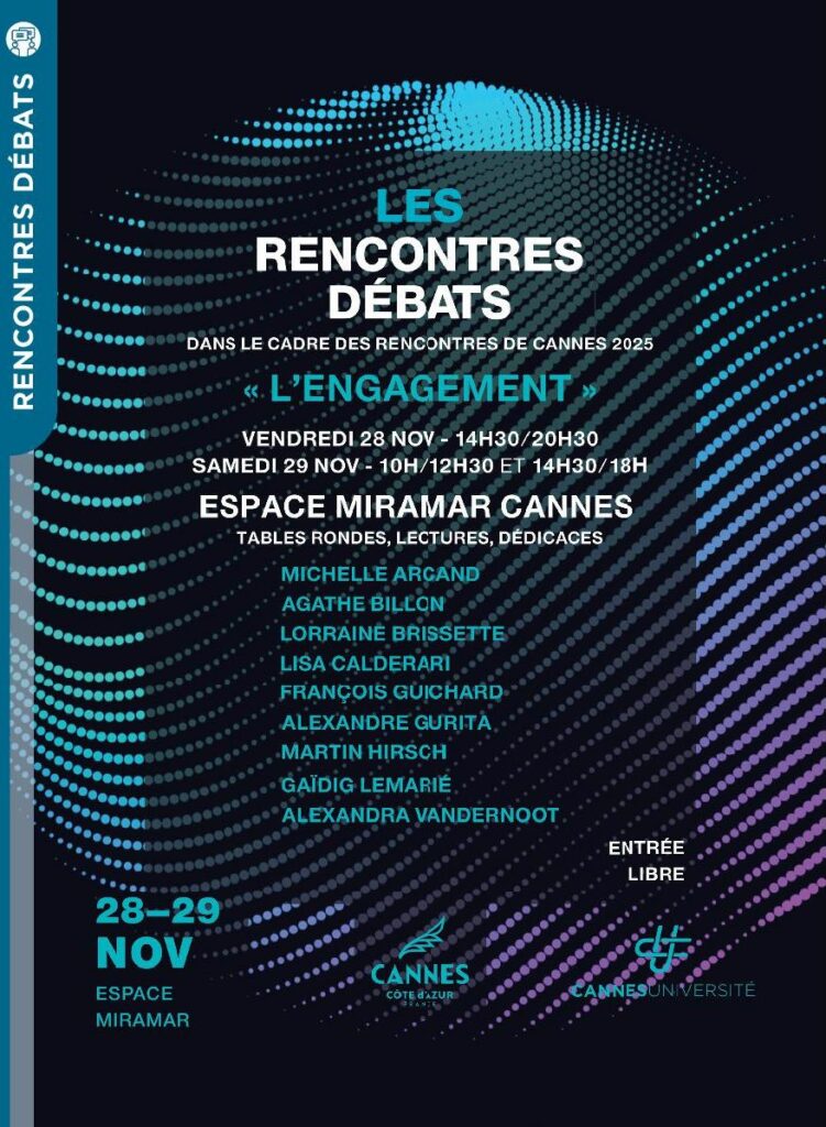 Pour la cinquième année consécutive, l’association Cannes Université organise le volet « débats » des Rencontres de Cannes en traitant pour cette édition du thème essentiel de l’engagement.